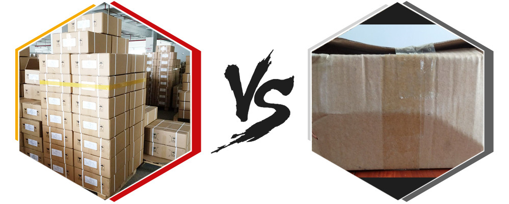 其他生產商為降低成本,一般采用普通紙箱,長途運輸中很容易造成紙箱破損、變形,內包裝使用廉價再生料膠袋包裝,容易破損。 導致問題:包裝變形,容易受潮,貨物損失,甚至中途丟失,誤工誤時。